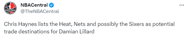 海耶斯还表示,若交易的话,篮网和热火将是利拉德最可能加盟的球队,76人也是其潜在下家。