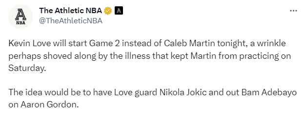 总决赛G2,连续被弃用三场的乐福重返首发阵容,顶替马丁回归首发,为何斯帅如此变阵?一是马丁总决赛状态不佳而且生病了,二是2米03的乐福能提升阵容的高度,也可以利用经验防守约基奇。