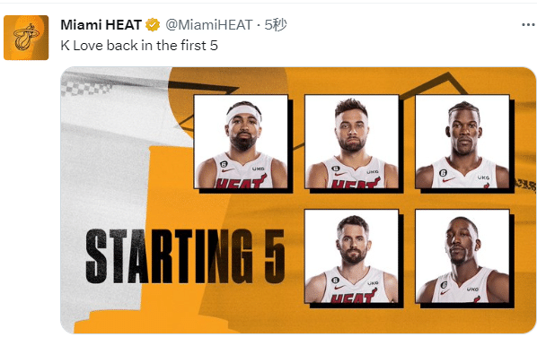 24直播网讯06月05日,总决赛G2一触即发,热火G2大变阵,官宣乐福顶替马丁重返首发阵容,搭配阿德巴约、文森特、斯特鲁斯和巴特勒首发出战;掘金则是延续原有的首发阵容,约基奇穆雷、波普、小波特和戈登继续担任首发五虎。