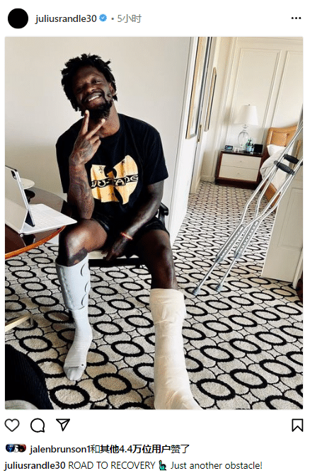 24直播网讯06月04日尼克斯球星兰德尔已经成功接受脚踝手术,晒术后恢复照,配文写道:康复之路,只是又一个障碍;预计兰德尔将在下赛季训练营前康复。