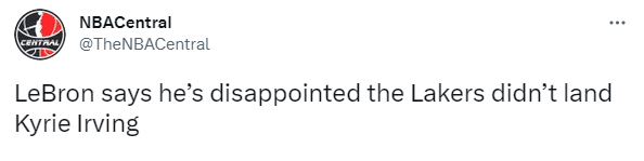 湖人和欧文相互有意,詹姆斯也想和欧文重聚,最终湖人抢人失败,詹欧无缘再次联手,据报道,湖人曾与篮网进行了多次谈判,欧文被交易前,湖人向篮网报价威少、2027年和2029年首轮签换欧文,但篮网想要更多,索要里夫斯和克里斯蒂两大潜力新星,湖人拒绝篮网的要价。