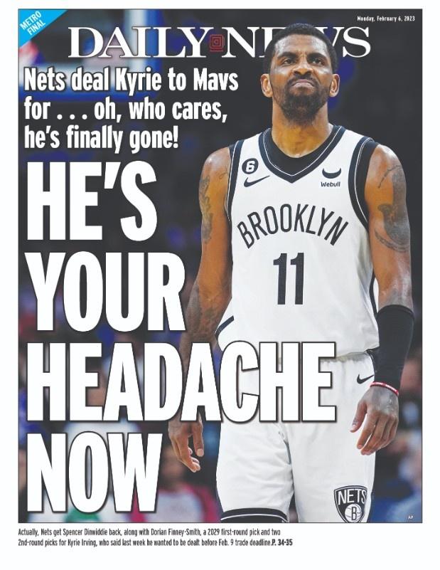 对于欧文被交易,纽约媒体头条封面写道:篮网将欧文送去了独行侠,换回了......,谁在意呢!关键在于欧文终于走了!他现在是让别人头疼的难题了。