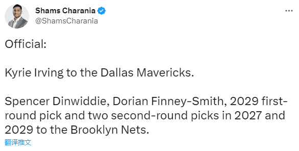 官宣!篮网独行侠2换5交易正式达成 欧文改穿2号联手东契奇冲冠
