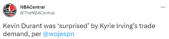 曝杜兰特对欧文申请离队感到惊讶!篮网全队猝不及防 名记为KD难过