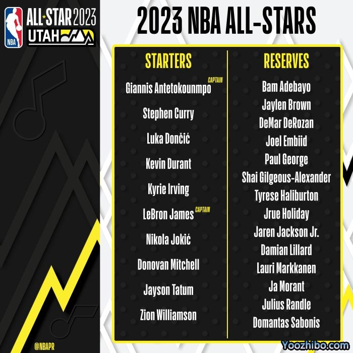 西部是詹姆斯(队长)、东契奇、库里、约基奇、锡安;替补阵容是莫兰特、小萨博尼斯、亚历山大(首次)、乔治、利拉德、马尔卡宁(首次)和小贾伦-杰克逊(首次)。