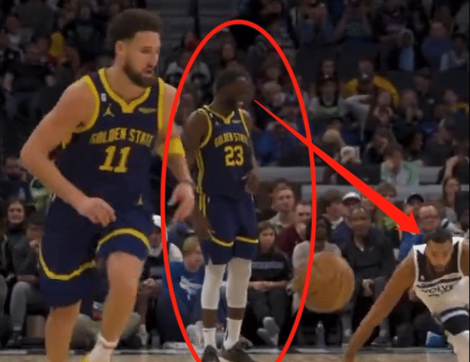 戈贝尔倒地之后,格林站在他身旁,冲着他露出嘲笑的表情。