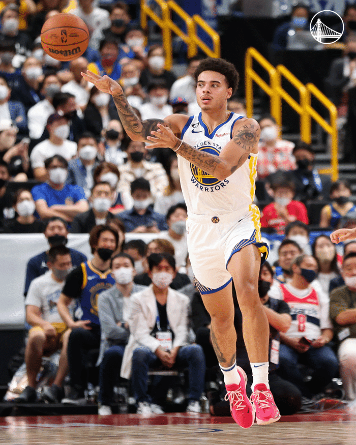 基诺内斯今年21岁,为勇士出战2场季前赛,场均上场10分钟拿到5分1.5篮板1助攻;威瑟斯庞今年26岁,为勇士出战4场季前赛,场均上场11.3分钟拿到4.5分1.5篮板1助攻。