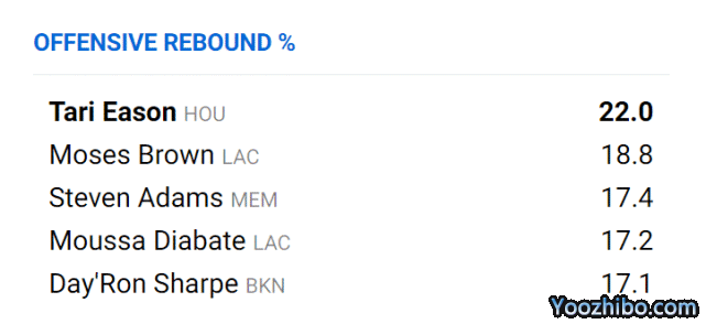 伊森对篮板,尤其是前场篮板的嗅觉确实太敏锐了,再加上优秀的身体条件,也难怪他在季前赛能在前场篮板率方面高居联盟之首。