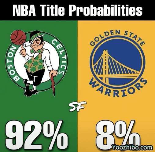 值得一提的是,总决赛勇士VS凯尔特人,勇士曾一度不被外界看好,尤其是在系列赛开局0-1落后和一度1-2落后于凯尔特人的情况下,勇士的夺冠概率最低的时候只有8%,而对手凯尔特人的夺冠概率高达92%;