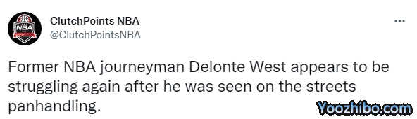 德隆蒂-韦斯特是04年首轮第24号秀,曾在NBA打过432场常规赛,场均拿到9.7分3.6助攻2.9篮板1.1抢断,先后为凯尔特人骑士、独行侠等队效力过,生涯总薪水超1600万美元,骑士时期和詹姆斯当过队友;可是由于吸毒成瘾和心理问题,退役后的韦斯特败光家财,沦落到街头乞讨。
