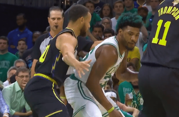 布朗单节狂飙17分,格林0分克莱4中1,库里陷入犯规麻烦