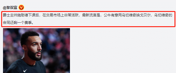 就在今天,据记者报道,公牛队已经行动,计划用全明星球员武切维奇交易得到戈贝尔,两人都是全明星级别的球员,一个擅长进攻,而一个注重防守,如果这笔交易达成,将会是双赢的局面。公牛队可以组成德罗赞+拉文+戈贝尔的新三巨头阵容,而球队的防守将大大改善。而爵士队则组成了米切尔+武切维奇的二人组,进攻火力大大提升。