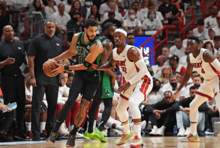 东决抢七,凯尔特人首节早早建立15分的领先,之后巴特勒带队疯狂反扑,下半场绿军再次拉开分差,末节关键时刻,塔图姆挺身而出,最终带队4-3淘汰热火,夺得队史第22个东部冠军,与勇士会师总决赛,冲击队史第18冠。