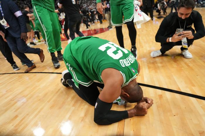 老将霍福德已经打了141场季后赛,生涯首次晋级总决赛,赛后霍福德趴在地板上,怒砸地板疯狂庆祝,这一刻,他真的太激动了。