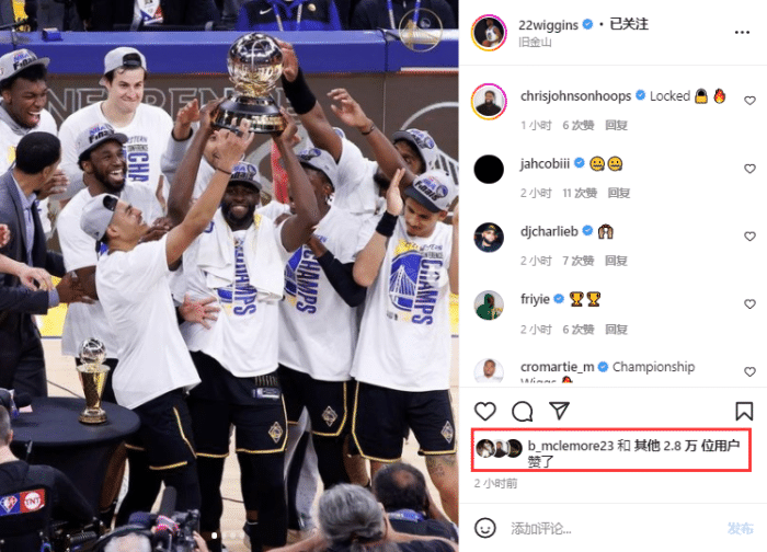 另外维金斯更新社媒,晒夺得西部冠军的现场照庆祝晋级总决赛,这是嘴哥生涯首次晋级总决赛;今年季后赛,维金斯场均拿到15.8分7篮板1.7助攻,西决系列赛场均18.6分7.2篮板2.8助攻表现更好,毫无疑问,他是勇士的夺冠拼图,冲击生涯首冠。
