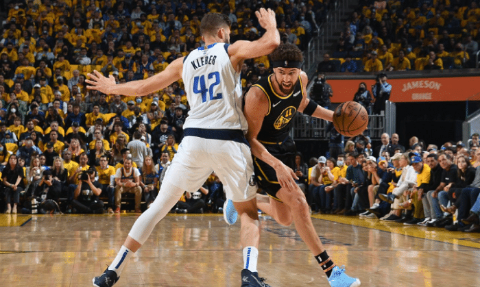 气势如虹!克莱半场5记三分+抖肩庆祝,库里遇惊魂,东契奇抱怨