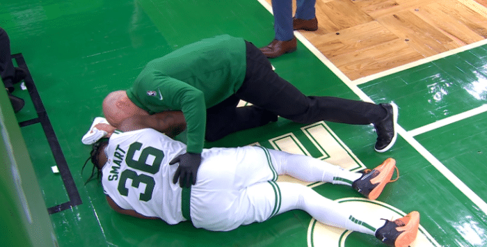 伤病潮!巴特勒因伤退赛,斯玛特90度崴脚痛苦倒地,被搀扶离场