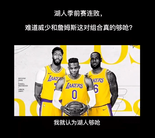 “詹姆斯威少这组合往这一搁,我就觉得湖人够呛!因为威少这运动员进攻太单一,就是一个字冲,你只要堵住他攻框他任何办法都没有,威少爷打球确实好看,客观地说威少没有任何一项过硬的技术,三分球也好、急停跳投也好、近框抛投也好,这几项主要进攻方式他一项都没有靠谱的。说实话这类球员不多,没有这种球员还拿4000万的”