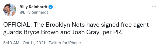 如果欧文不接种疫苗,他将缺席篮网本赛季的所有主场比赛,这意味着球队需要在后场增强阵容深度,提前准备一些备胎。篮网跟队记者表示,新签的两位球员,预计都不能最终留在篮网效力,但他们可以和篮网下属的G联赛球队签约,如果篮网在赛季期间有需要,可以再考虑和他们签短约。