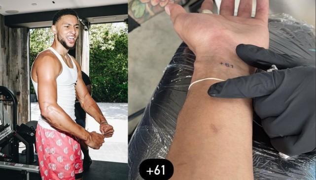 西蒙斯添加新纹身!+61致敬澳大利亚?球迷调侃:季后赛罚丢数