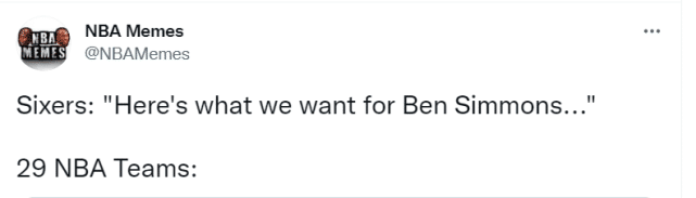 关于这件事,美媒曾晒出一张美国男篮球员在飞机上睡觉的旧图,调侃道:“当听到76人讲述自己想要得到关于西蒙斯的回报时,29支NBA球队的反应如图。”