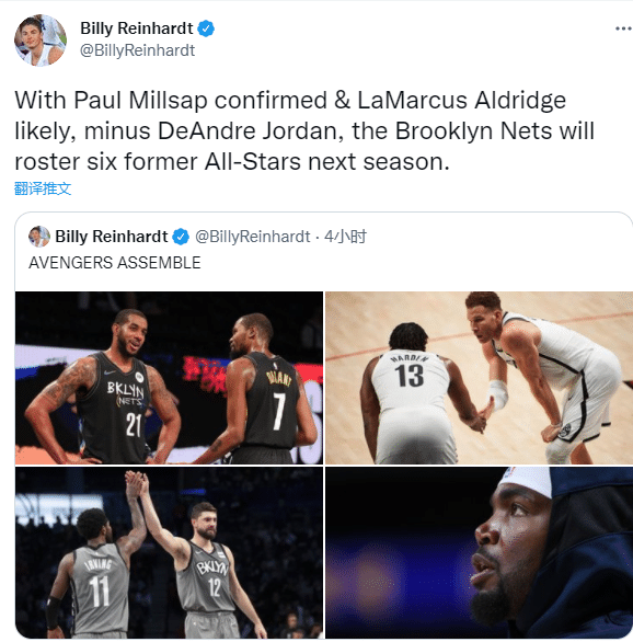 算上阿德的话,篮网新的大名单之中有6名全明星球员——杜兰特(11次)、哈登(9次)、欧文(7次)、格里芬(6次)、米尔萨普(4次)、阿德(7次),总共44次入选全明星;与篮网形成鲜明对比的是洛杉矶湖人,拥有7位全明星球员,59次入选全明星,另外要说的是15年的全明星球员之中,有11人为篮网和湖人效力。