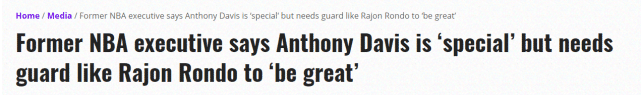 一位匿名的NBA高管也认为浓眉需要朗多这样的后卫。他说道:“AD(浓眉)很特别,但他需要一个像朗多这样的后卫才能变得更强,”2019-20赛季,也就是湖人的夺冠赛季,浓眉场均26.1分9.3篮板3.2助攻,表现明显好于上赛季,美媒认为这和朗多当时在阵中也有一定的关系。此前两人在鹈鹕队也曾一起打过球,化学反应确实很好。