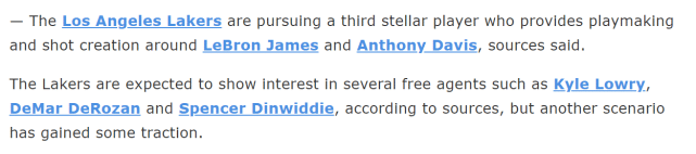 来源:24直播网07-26 10:2924直播网讯 北京时间7月26日,名记查拉尼亚和沃纳罗斯基都报道了湖人的最新运作。这支在本赛季首轮就被淘汰的劲旅,正试图在休赛期补强阵容,力争在2021-22赛季重夺总冠军。