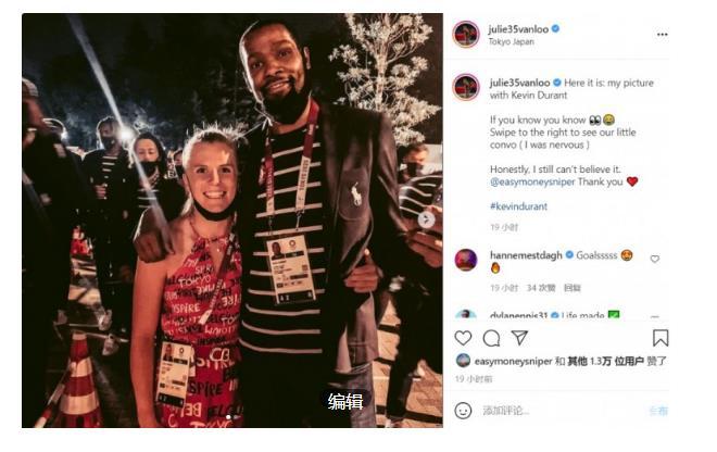 这个追星杜兰特的美女球员是谁呢?很快小妮子的身份被扒了出来,和杜兰特合影的美女球员名叫Julie Vanloo,朱莉是比利时女篮的国手,她在社交媒体上晒出了自己和杜兰特的照片表示,这是我和杜兰特的合照,你们应该知道我很紧张,说实话,我到现在还不敢相信,@凯文-杜兰特,谢谢你。