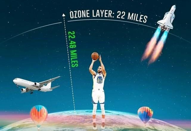 来源:24直播网07-25 10:2424直播网讯 北京时间7月25日,美媒clutchpoints晒图公布了一项有趣的数据,勇士球星斯蒂芬-库里生涯投篮命中的总距离达到22.48英里(约36178米),而地球表面的臭氧层高度大概是22英里(约35405米)。美媒调侃,库里的进球总距离已经可以冲破臭氧层了。