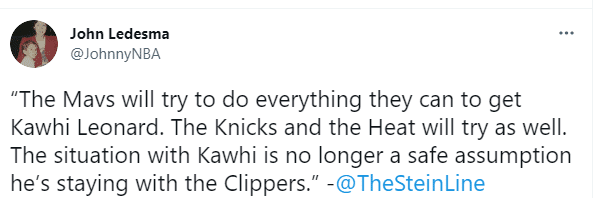 小卡受伤但他在快船的未来还不确定,名记更是直言他离队的可能性正在增加,独行侠、热火和尼克斯三队争夺,其中独行侠最积极最努力;很明显,库班想要为东契奇引援一位强大的帮手,外界曾多次爆料东契奇和波尔津吉斯关系不好,后者嫉妒东契奇的球队地位。