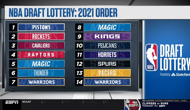 这次勇士和马刺也有机会冲击第13号签位的,可惜的是勇士获得第14顺位,而马刺是第12顺位,而最终步行者拿下这一传奇签位。也祝贺步行者获得第13顺位,只要不交易的话,他们就会在这个顺位上选择他们心仪的球员,就看步行者是否会选择一名后卫了。