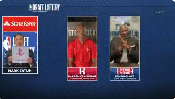 火箭无缘状元签!奥拉朱旺一脸失落,大本赢了:伸出一根手指霸气庆祝