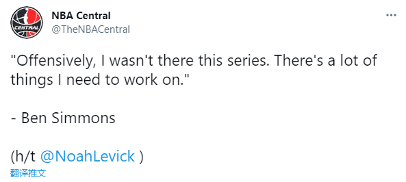 赛后,西蒙斯接受批评并且直言:进攻方面,我在这个系列赛没发挥作用,我仍然还有很多事要做;我们输了,这很糟糕,赢球并不容易,你必须要有坚强的意志,不能想当然。