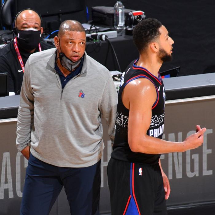 末节西蒙斯篮下无人防守,他放弃上空篮得分,却把球传给队友,稳拿的两分变成罚球;本轮系列赛,西蒙斯场均11.9分,近四战末节0出手。