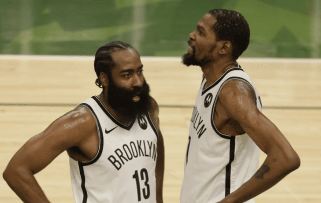 24直播网讯 在湖人队之后,篮网队成为了第二支被伤病击倒的夺冠热门球队,字母哥的一个小伸脚,让欧文只能坐在场边看球,哪怕哈登挺着半血的身子强行复出,可是他能够帮助杜兰特的还是有限,至少哈登的数据和表现并不像个巨头。