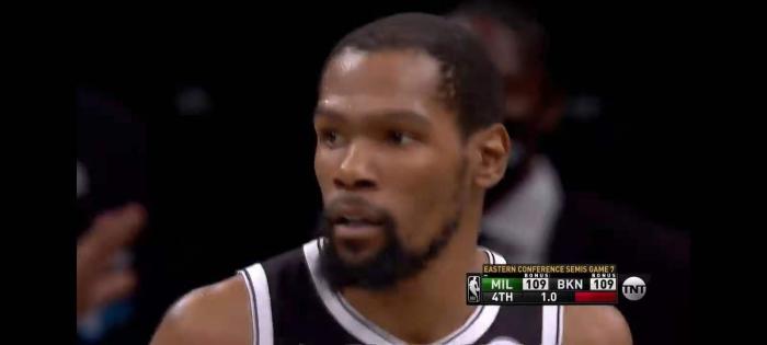 接下来,我们再来说说昨天比赛中最悲情的杜兰特,昨天的抢七大战,杜兰特的篮网队输了,这场比赛,杜兰特打了53分钟,他一分钟都没有休息过,他拿到了48分,他命中了常规赛时间的绝平球,可是让杜兰特绝望的是在加时赛,当他体力耗尽的时候,主教练却连一个暂停都不给他。
