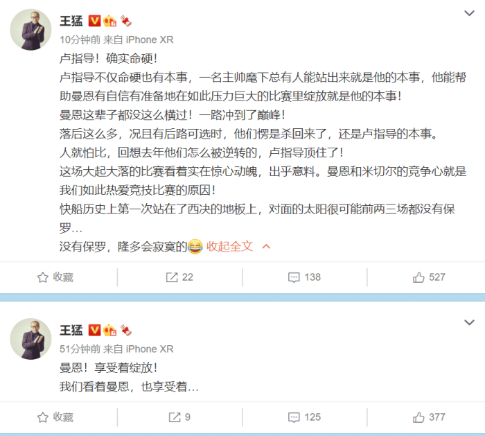 王猛狂赞泰伦卢,认为他真是命硬,愣是在落后25分的情况下逆转晋级,执教水平的确高。顺便也调侃了一下保罗和隆多,这一轮系列赛隆多鲜有表现机会,大家都期待西决隆多VS保罗,这对恩怨对决,但现在保罗可能会缺席几场甚至是系列赛都打不了,看不到很多精彩画面了!