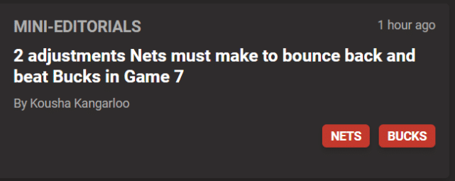 到目前为止,篮网在这轮系列赛里最大的缺陷是篮板能力和前场的身高问题。由于小乔丹不在轮换中,他们失去了在低位抵抗雄鹿的体型、力量和运动能力。把小乔丹放回轮换,将在抢七大战的攻防两端产生重要影响。