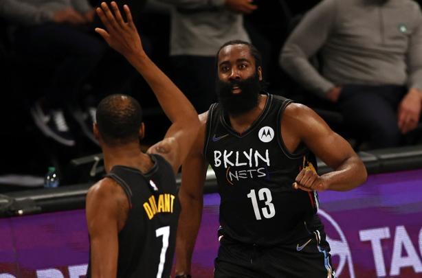 篮网半节仅4分,哈登碰瓷另类方式帮助球队,霍勒迪满脸无奈