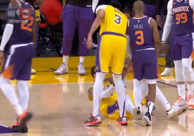 破案了,为何詹姆斯不让保罗拉起倒地的库兹马?老詹太暖心