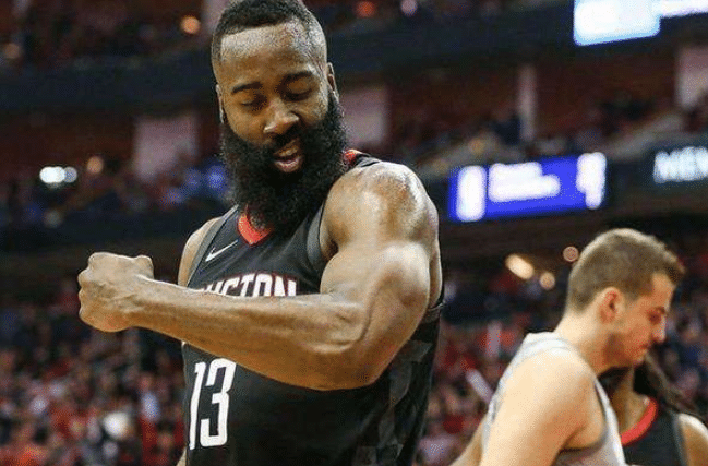 哈登紧勒球衣,露出了健壮无比的麒麟臂。上肢力量强壮可见,暴露在外的青筋向我们展示了暴力美学的实力。再配上哈登不修边幅的大胡子,说他的宋代梁山好汉鲁智深也完全说得过去。哈登一般不会卖力防守,但认真起来的哈登可是在全明星对位过字母哥的。能跟字母哥一对一进行肉搏战,哈登的身体强壮度真的比我们想象中要坚硬得多。