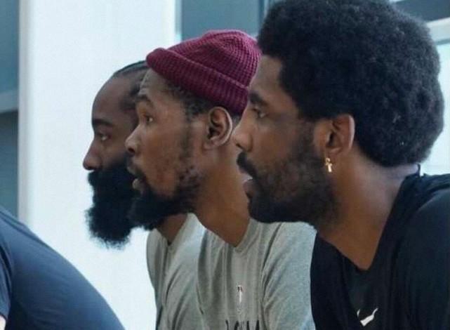 在离开前,篮网还安排了一次球队训练,为G3做好准备。官方同样晒出了一组训练照片。照片中有一张三巨头的训练合影,三人神情专注,2-0领先并不会让他们有丝毫懈怠,毕竟,他们的目标是获胜16场并最终夺冠。杜兰特依然戴着小红帽,这已经是他的训练习惯配置,欧文和哈登坐在杜兰特的两侧。