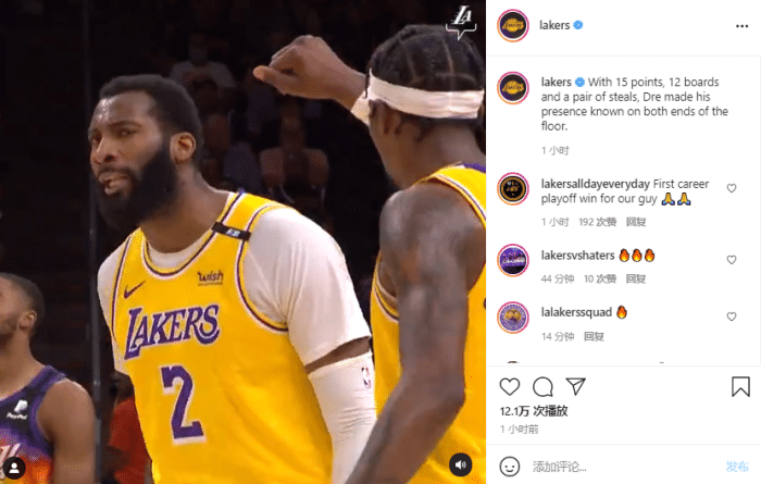 24直播网讯 北京时间5月27日,湖人官方更新动态,晒出“庄神”德拉蒙德的G2集锦,并且写道:15分12篮板2次抢断,德拉蒙德在攻防两端都表现出色;詹姆斯转发湖人动态,配文:他做到了,巨大的胜利。