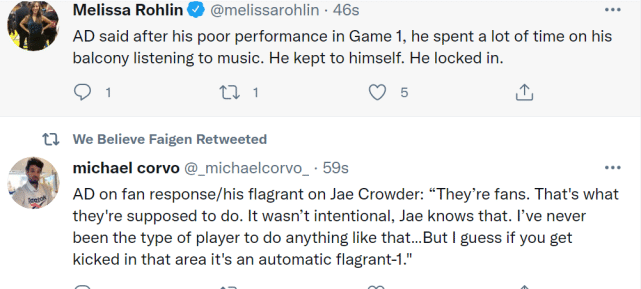 比赛刚开始58秒,浓眉就在一次跳投中被克劳德犯规,他的脚有上踢动作,命中克劳德的裆部,对方痛苦倒地,裁判回看后,给了浓眉一个一级恶意犯规。社媒上,不少球迷抨击浓眉的踢裆举动,甚至拿他和格林当初踢裆亚当斯相比。