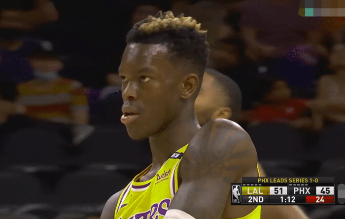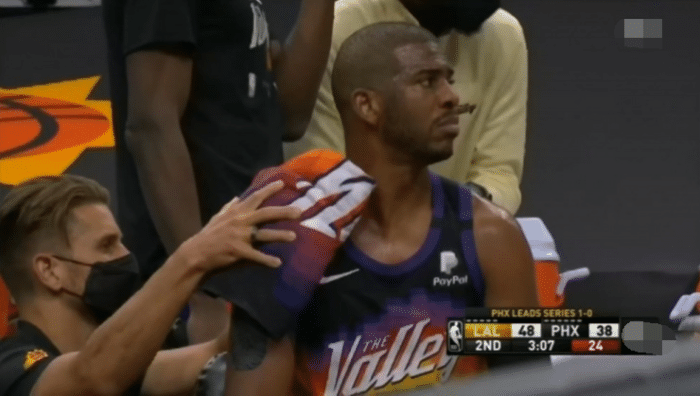 施罗德三分命中帮助湖人得分,太阳这边连续打出精彩配合,克雷格、艾顿篮下连续暴扣得手,詹姆斯重新回到场上,湖人进攻端瞬间就变得流畅起来,施罗德连续得分回应,德拉蒙德篮下强打命中并造成犯规,湖人将领先优势扩大到11分,佩恩送妙传,艾顿空接暴扣得手,太阳这边发挥最出色的就是艾顿了,他7次出手全部命中,施罗德突破上篮造犯规两罚全中,这一节的比赛施罗德发挥非常抢眼。镜头给到场下的时候,保罗的肩部也是敷上了冰袋。季后赛刚开打,保罗又受伤,不知道保罗的受伤会不会成为本轮系列赛的转折点,半场比赛打完,湖人53:47领先太阳6分。