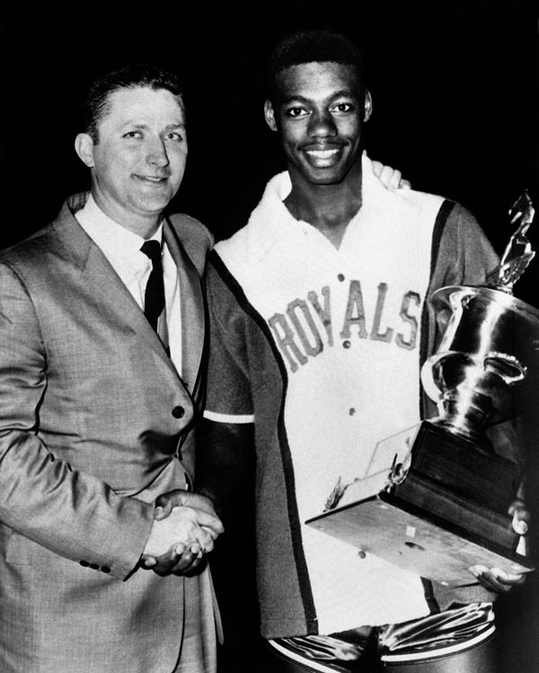 在这一年进入NBA的巨星还有“大O”奥斯卡·罗伯特森。罗伯特森是辛辛那提大学队史上第一个黑人球员,留下场均33.8分、15.2个篮板的傲人数据后,他于1960年以状元身份成为皇家队一员。与韦斯特一样,罗伯特森是罗马奥运会篮球冠军队成员。进入NBA后,罗伯特森根本无需适应,犹如天外来客般惊煞世人,菜鸟赛季就险些达成场均三双伟业:30.5分、10.1个篮板和9.7次助攻——终结了鲍勃·库西对助攻王长达8个赛季的垄断。这着实是个高分乱颤的赛季,罗伯特森和韦斯特的30+被“大北斗”张伯伦的场均38.4分所掩盖。连续第2季揽下得分王之外,张伯伦蝉联了篮板王,成为该季最为风光的球员。38.4分、34.8分和30.5分,NBA历史上首次出现单季同时有3名球员场均30+的盛景。