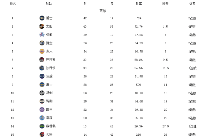 西部最新排名!爵士领跑存隐患,快船7连胜被终结,火箭倒数第一