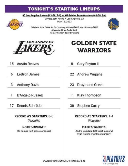 来源:24直播网05-13 09:4924直播网05月13日,NBA季后赛湖人和勇士G6关键战来了,两队首发正式出炉,维金斯带伤出战,勇士继续使用死亡五小首发;湖人变阵,施罗德顶替范德比尔特进入首发,哈姆终于变阵了,浓眉免遭脑震荡,继续带伤出战。
