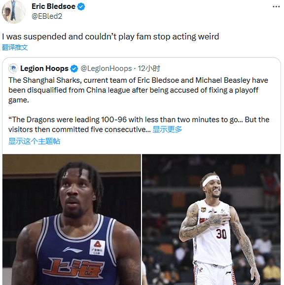 上海男篮的外援布莱德索不满外媒在报道这件事情的时候使用自己的照片,他表示这是媒体们在故意误导,让球迷以为他也参与了这场消极比赛,因此他愤怒回应道:“我已经被禁赛,都没法上场,你们能不能不要这么奇怪。”